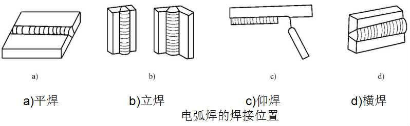 (2)确定焊条电弧焊的焊接位置 焊条电弧焊在焊接时的相对位置有平焊、立焊、仰焊与横焊,如下图所示。