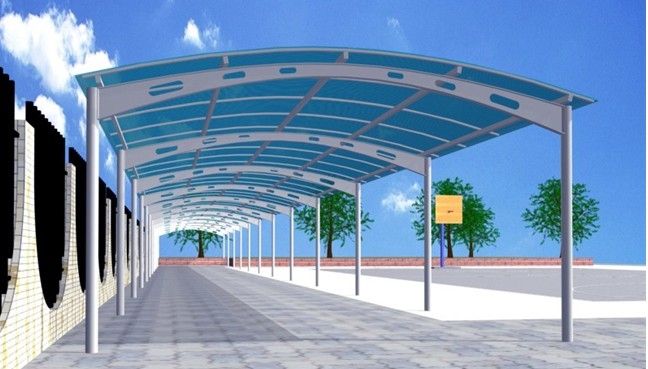 3、钢结构雨棚结构不同,报价也不同。比如小区民宅用的PC透明耐力板,样式不同,尺寸大小不同,所以价位是不同的,地区不同,价位也是不同的。